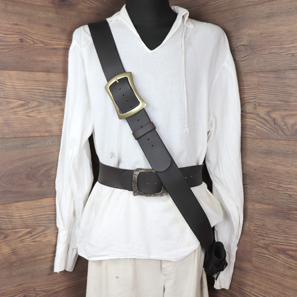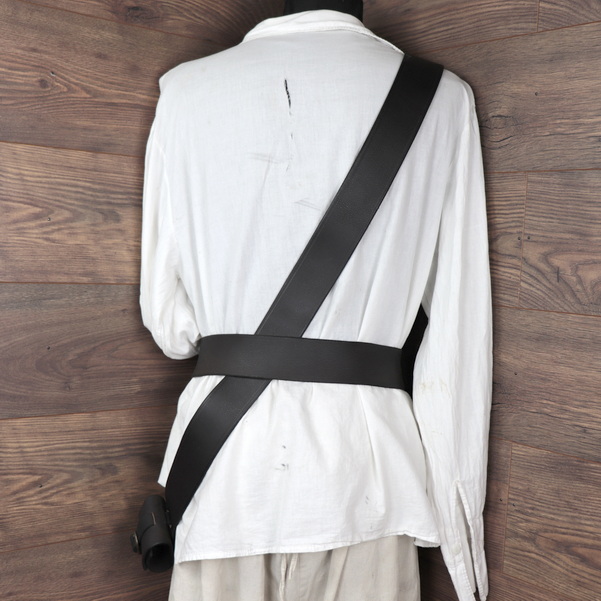 Pistolenhalter vorn senkrecht: Lederrolle als Pistolenhalter vorn. Rolle lässt sich mit 2 Riemen um den Crossbelt festschnallen