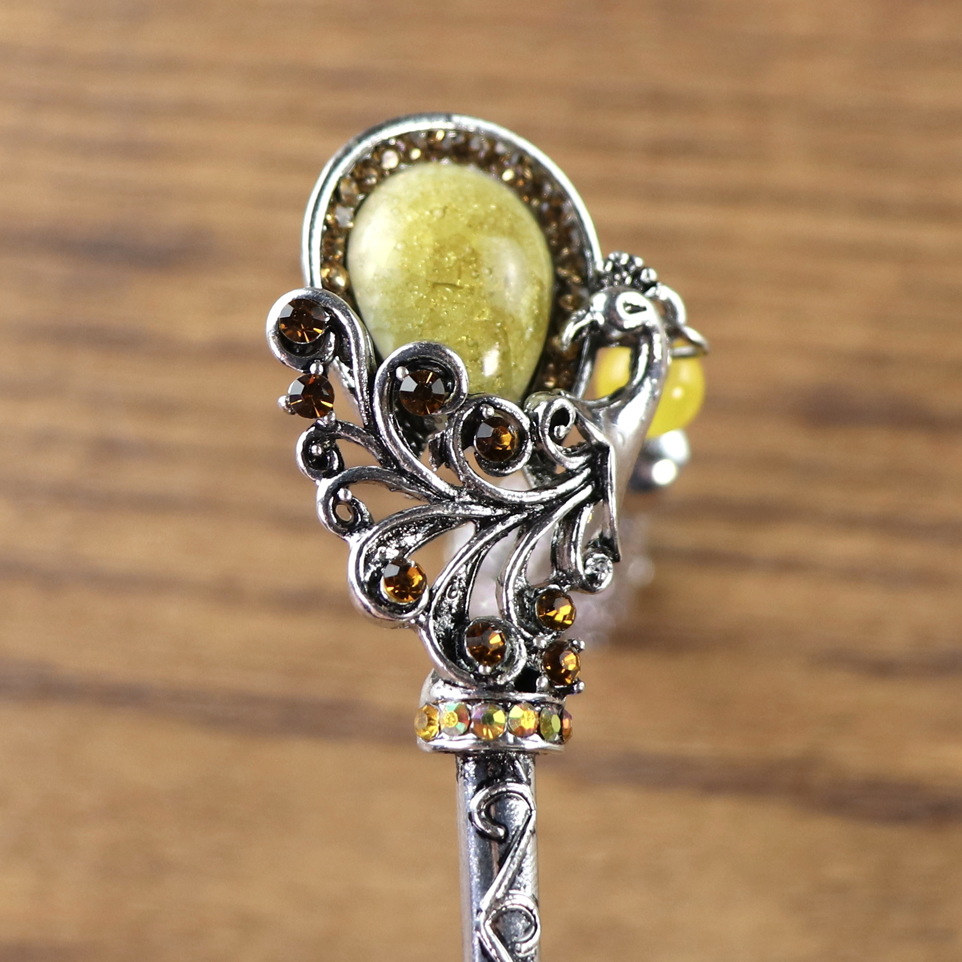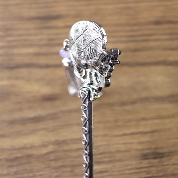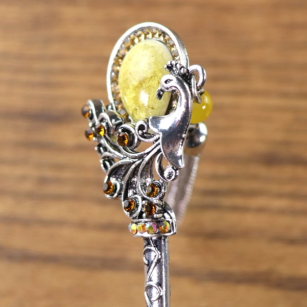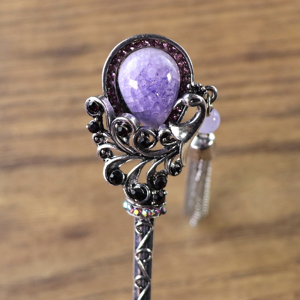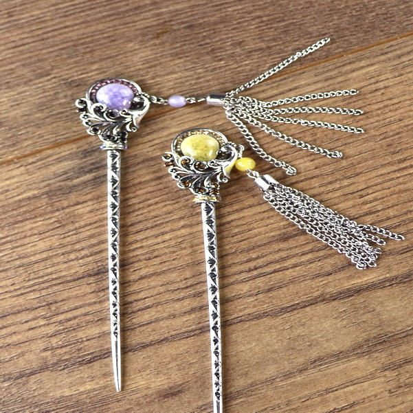 Haarnadel mit gelbem oder lila Stein und Kettenquaste