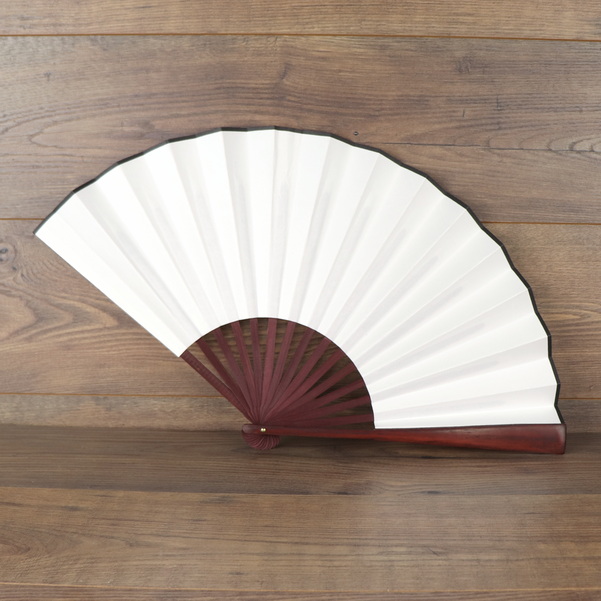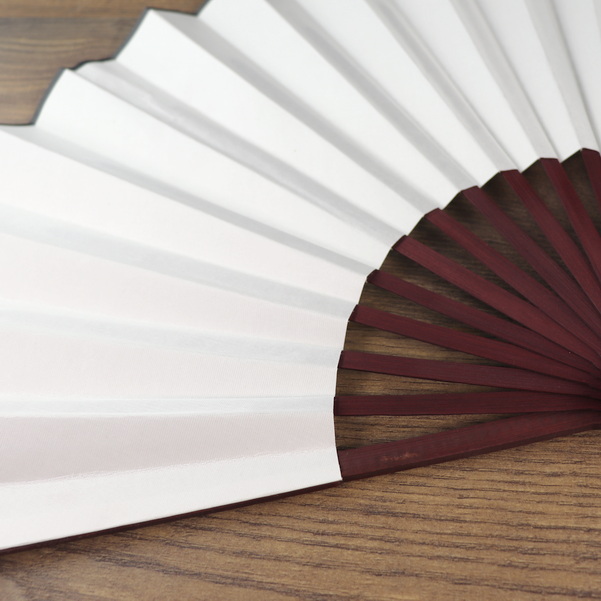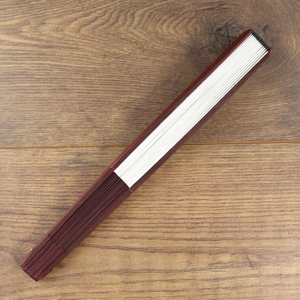Bambus / Seiden Fächer, Bordeaux-Weiß, 59 x 34 cm
