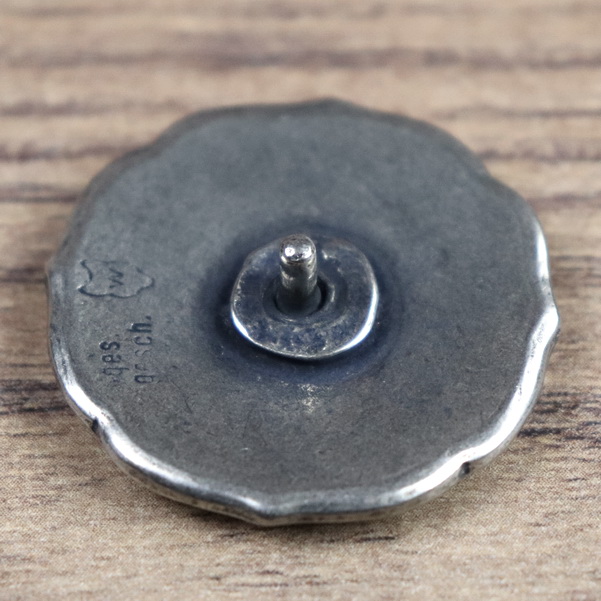 Auf der Rückseite befinden sich ein Stift, auf den man zur Befestigung einfach die mitgelieferten kleinen Kappen aufsetzt und dann das Metall mit einigen leichten Hammerschlägen am Leder fixiert.