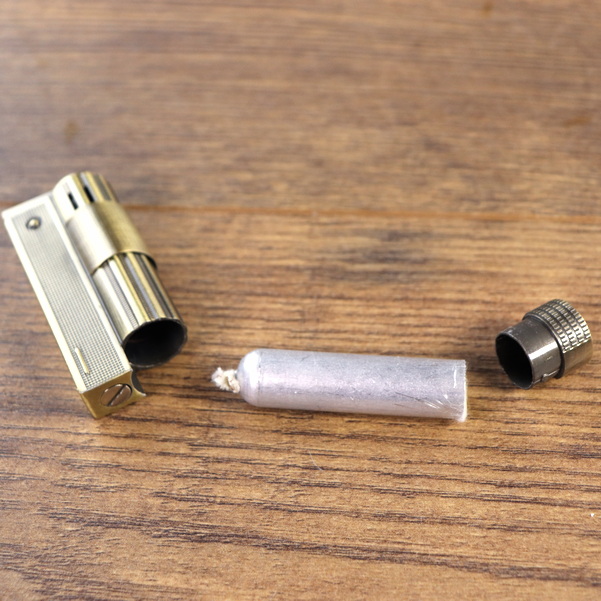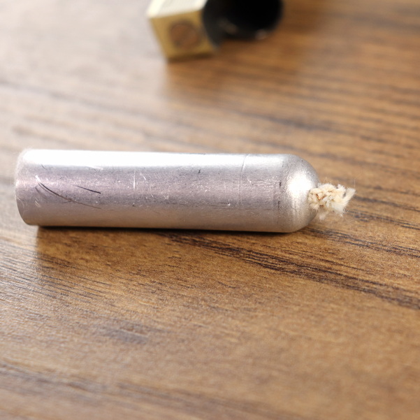 - die Patrone mit Watte und Docht entnehmen und untere Seite nach oben drehen