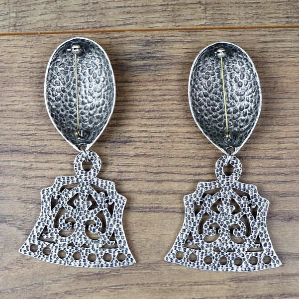 Wikinger Schalenfibel mit Verteilern für Gewandketten Material: Zamak Farbe: Altsilber Größe: Ovale Brosche 62 x 39 x 9 mm, Verteiler: 62 x 62 x 4 mm Auf der Rückseite ist eine Sicherheitsnadel
