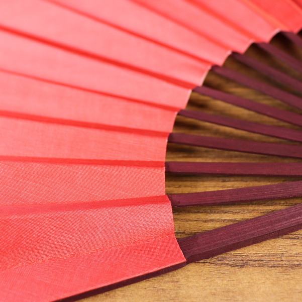 Bamboo / Silk Fan, Bordeaux-Red, 59 x 34 cm