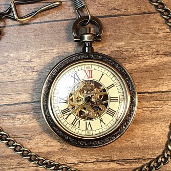 Pocket watch - Skeleton watch - Mechanical watch with "wood"