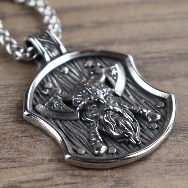Necklace "Medallion Viking Head with 2 Axes"