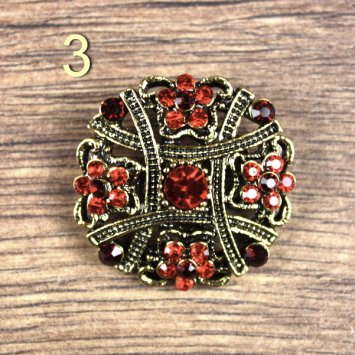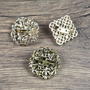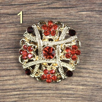 Colors: Metal: Gold, Stones: Green, Size: Round brooch: 23 mm, Floral brooch: 25mm, Material: Zamak, Stones: Glass. There is a safety pin on the back
